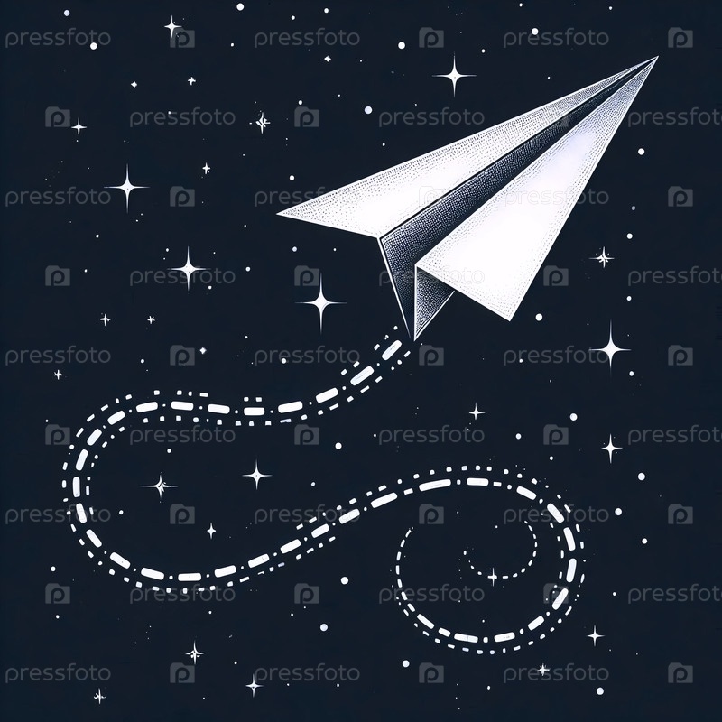 Бумажный самолет в полете чернила рисование художественного рисунка печать на черном, Ai generated image