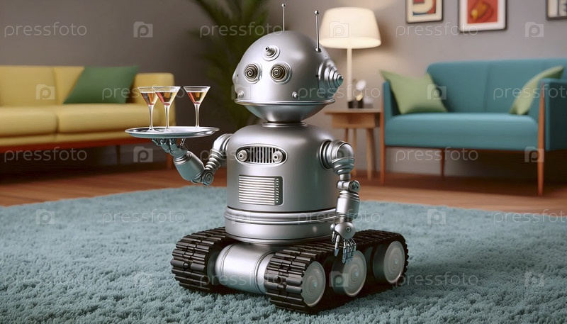 Домашний робот-услуга с цилиндрическим телом, головой купола и когтями, подающий напитки, Ai generated image