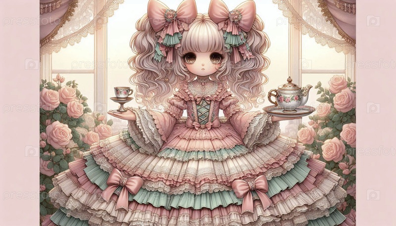 Подробная иллюстрация кавайи сладкой девочки, Ai generated image