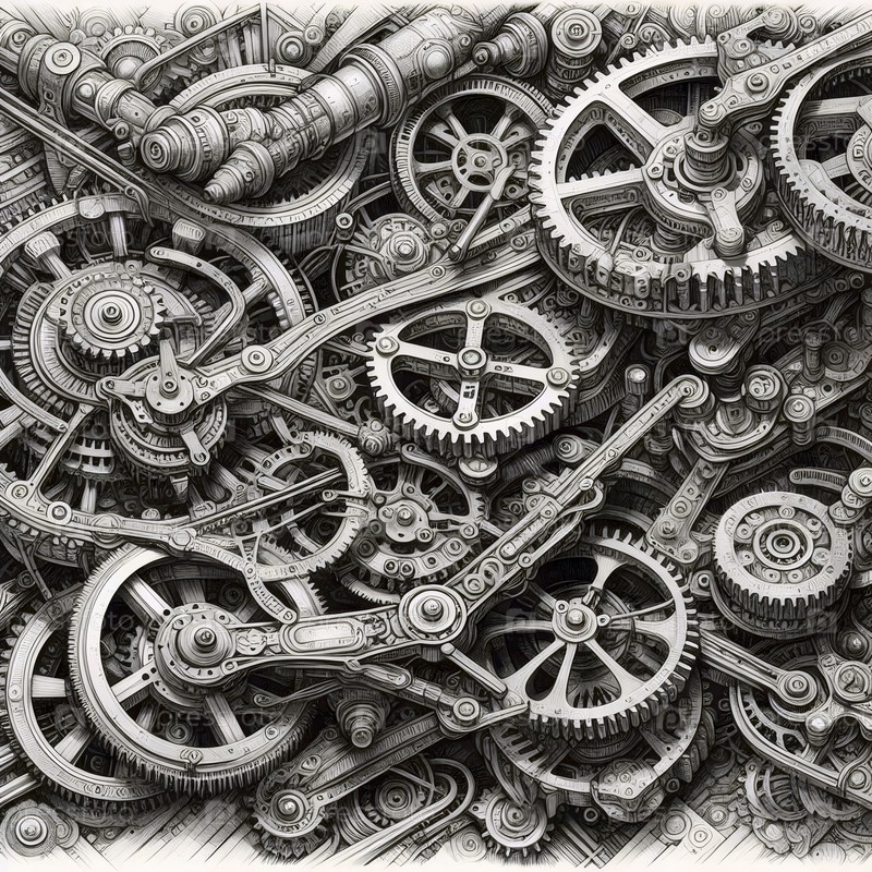 Steampunk Gears чернила A ink drawing art print, Ai создал изображение