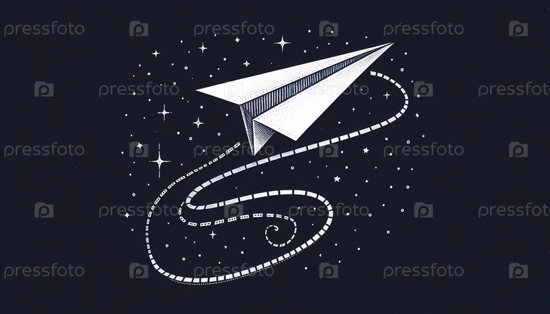 Бумажный самолет в полете чернила рисование художественного рисунка печать на черном, Ai generated image