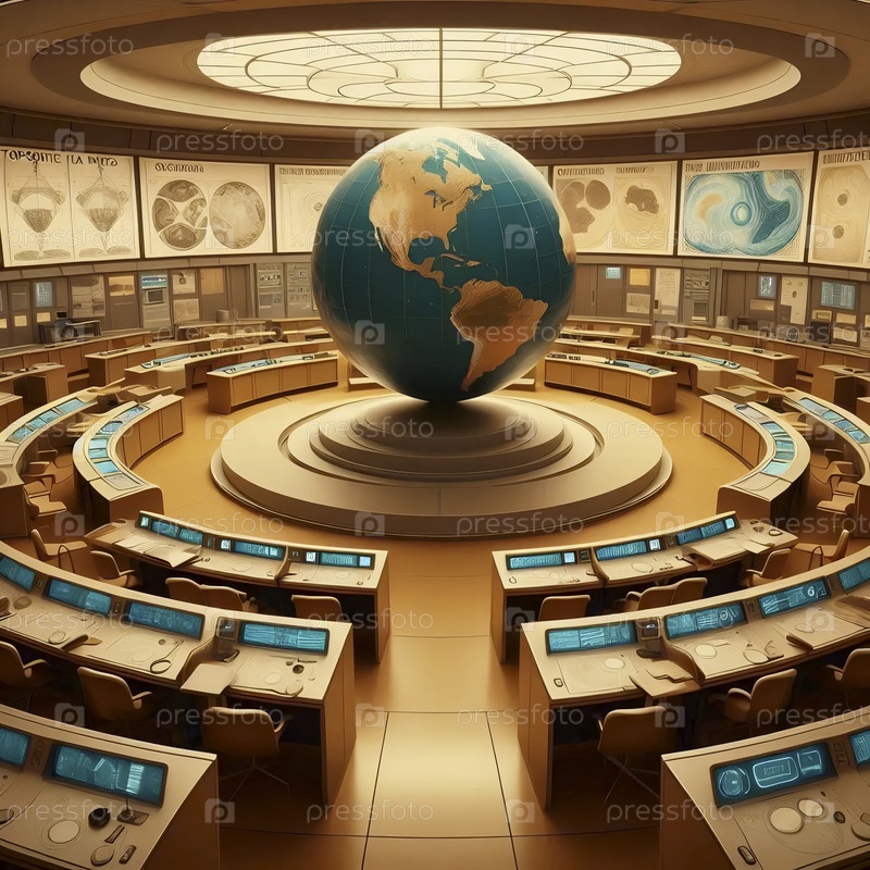Классный класс будущего с индивидуальными модулями обучения и большим голографическим глобусом, Ai создал изображение