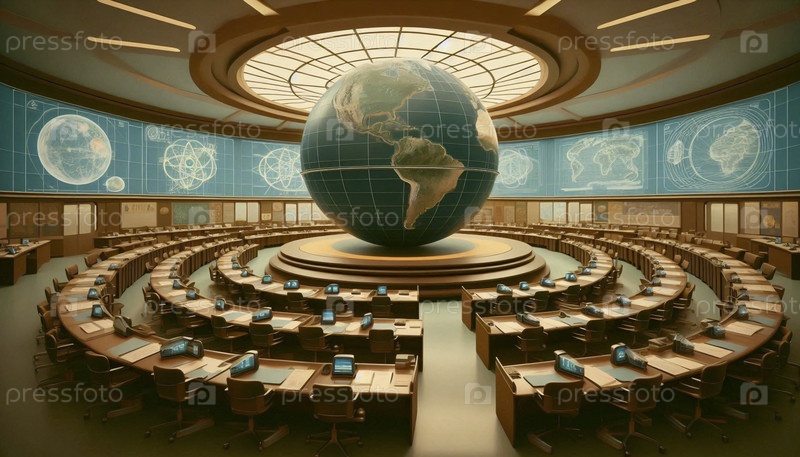 Классный класс будущего с индивидуальными модулями обучения и большим голографическим глобусом, Ai создал изображение