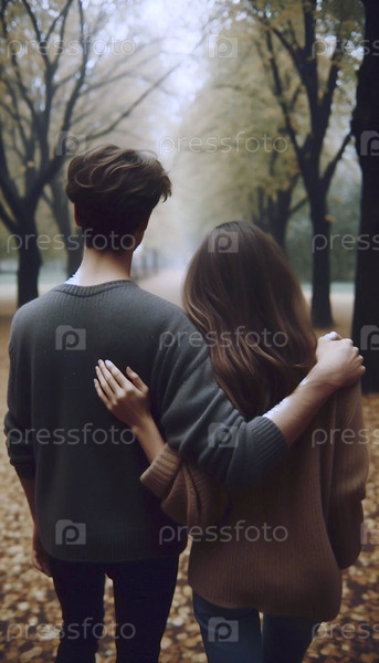 Тихий момент взаимной поддержки между друзьями, идущими вместе осенью, Ai generated image
