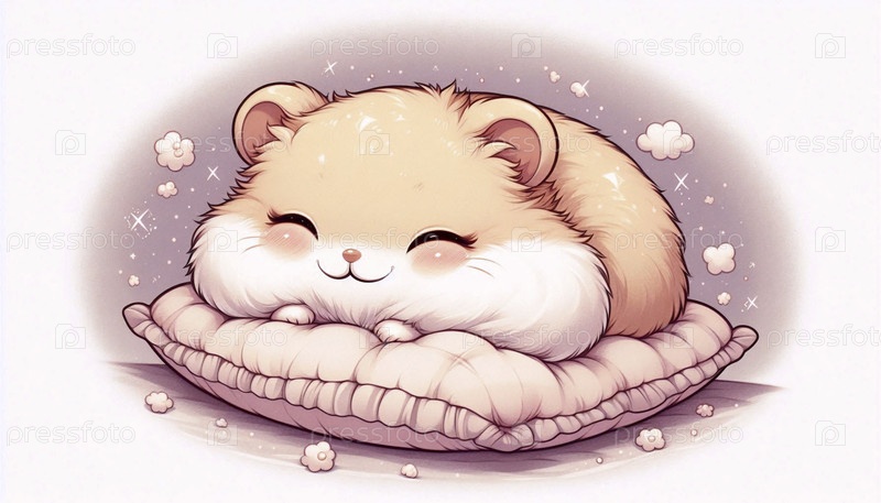 Подробная иллюстрация кавайи спящего хомстера, Ai generated image