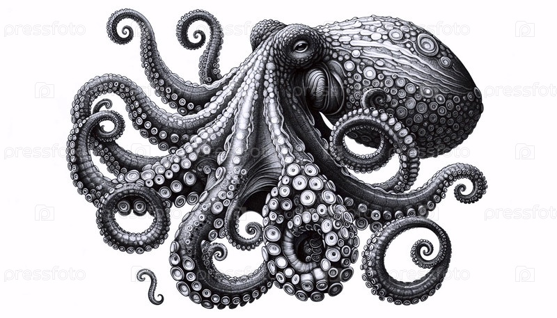 грациозный чернильный рисунок осьминога
