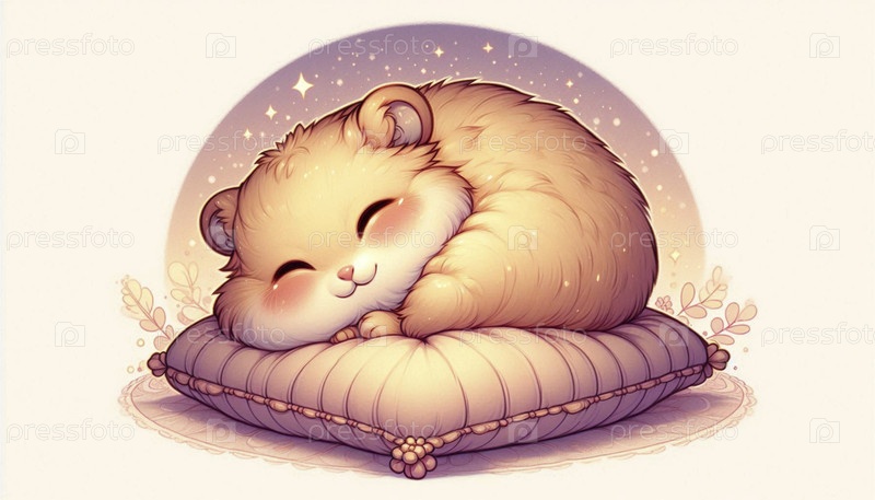 Подробная иллюстрация кавайи спящего хомстера, Ai generated image