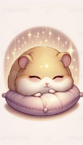 Подробная иллюстрация кавайи спящего хомстера, Ai generated image