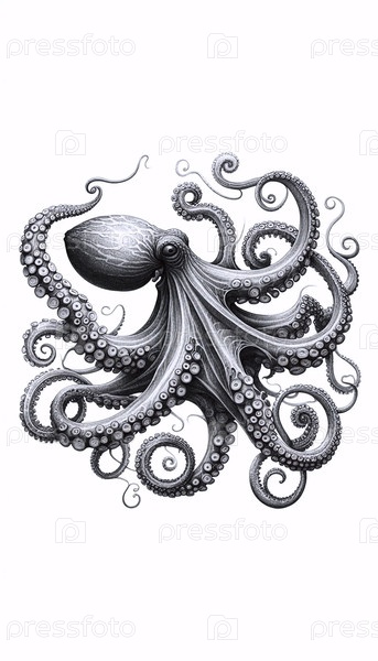 Грациозный осьминог чернила рисунок A ink drawing art print, Ai generated image