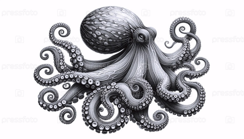 грациозный чернильный рисунок осьминога