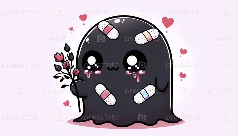 Ями Кавайи иллюстрация грустного пастельного призрака, Ai generated image
