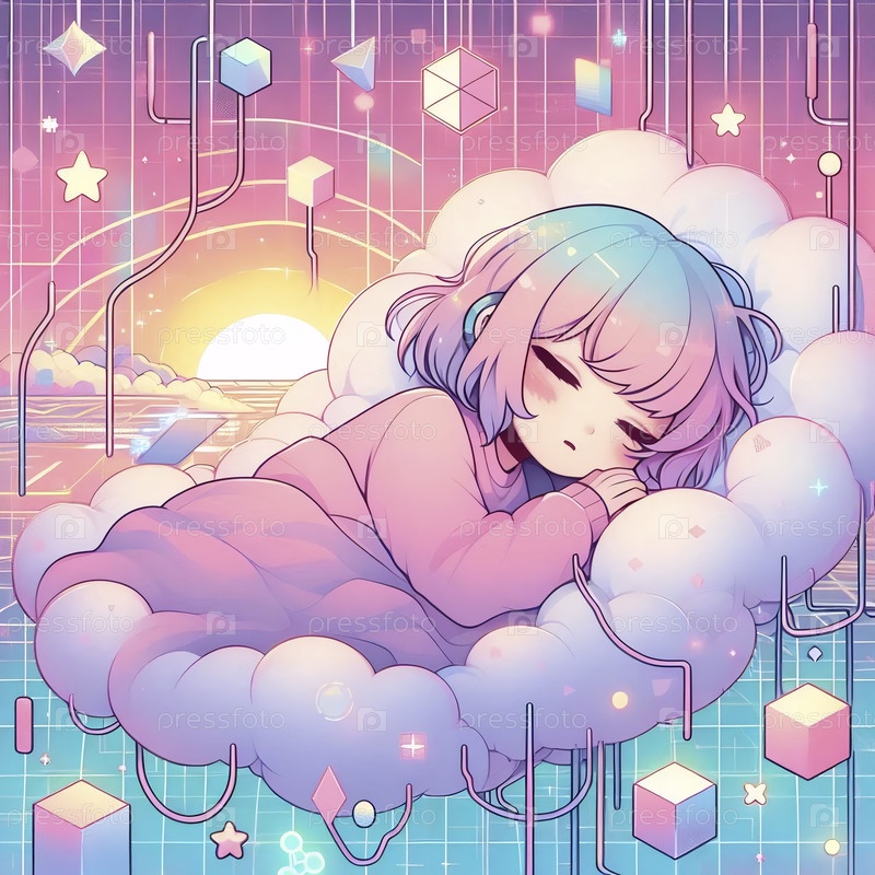 Каваи-сцена девушки, мечтающей о цифровом облаке, Ai generated image