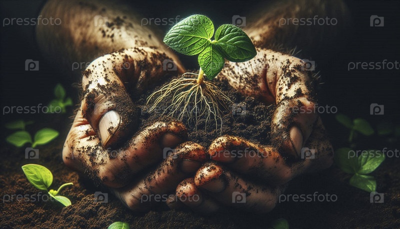 Руки огородника, выветрившиеся и знающие, нежно пересаживая саженцы в богатую темную почву, Ай создал изображение