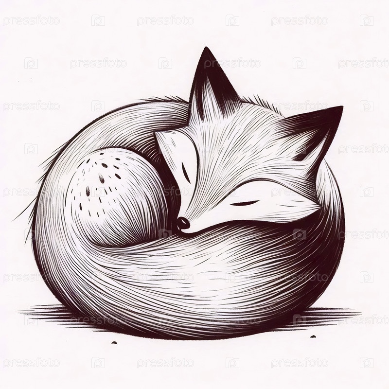 Спящая лиса чернила рисование арт-принт, Ai generated image A