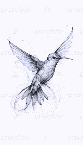 деликатный чернильный рисунок колибри
