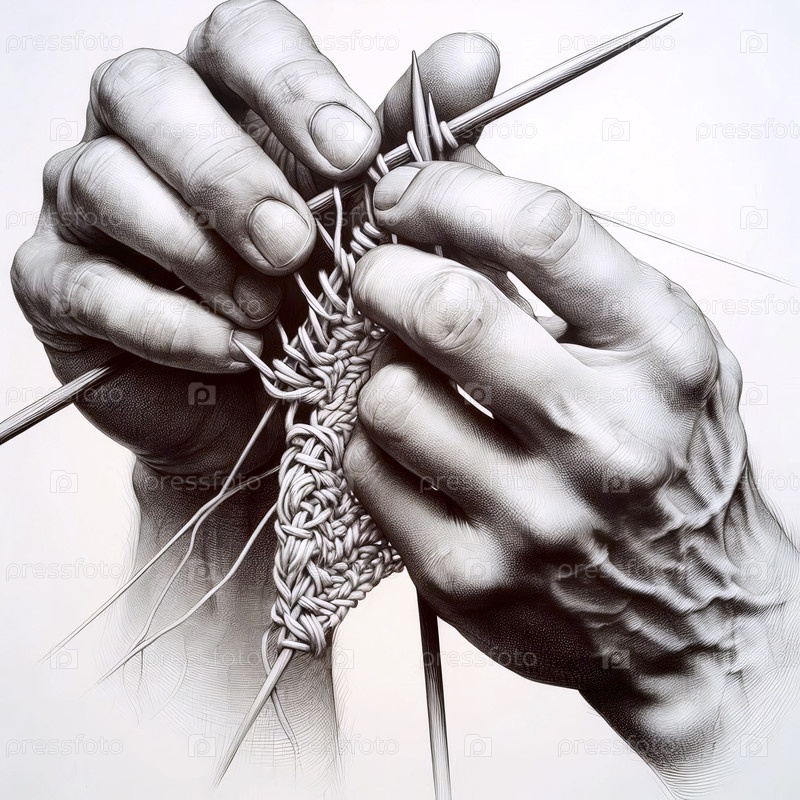 Руки Трикотаж чернила рисование художественная печать, Ai generated image