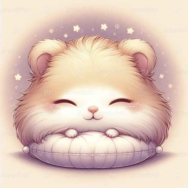 Подробная иллюстрация кавайи спящего хомстера, Ai generated image