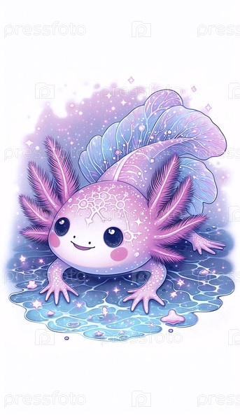 Подробная иллюстрация кавайи звездного аксолота, Ai generated image