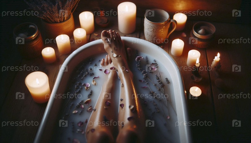 Интимный ритуал самообслуживания расслабляющей ванны с натуральными элементами, Ai generated image