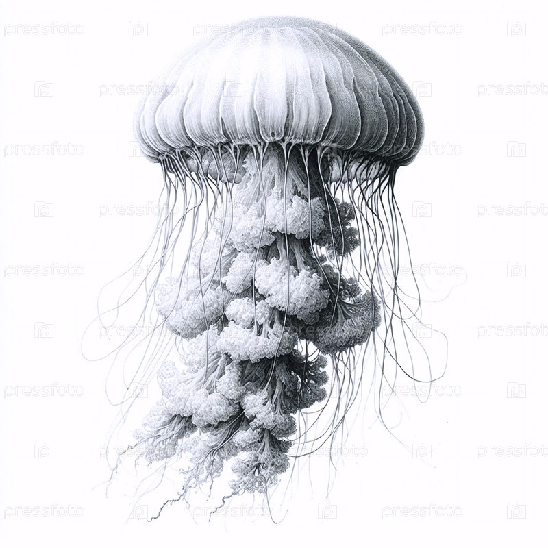 Дрейфинговая медуза чернила рисование художественная печать, Ai generated image