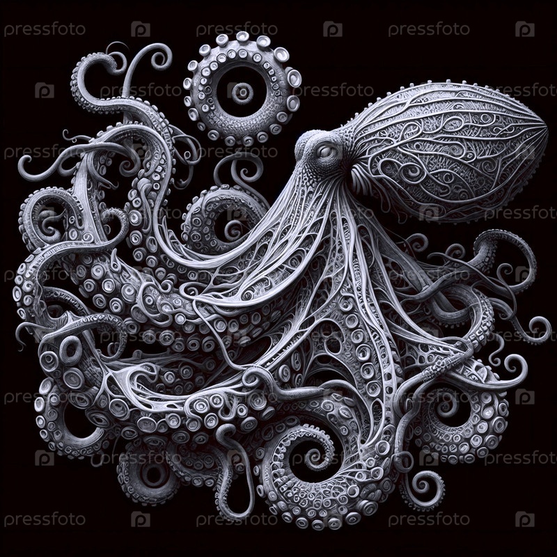 Detailed Octopus A ink drawing art print, Ai generated image Подробный чернильный рисунок осьминога художественная печать, созданная изображением