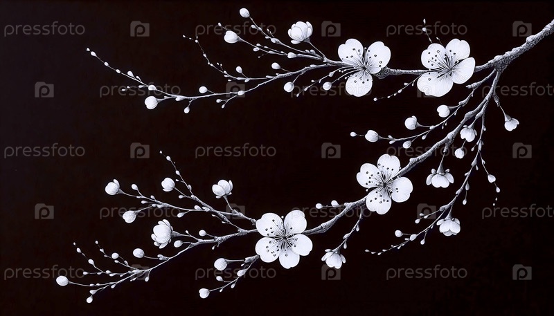 A Pair of Cherry Blossoms чернила рисунок художественного произведения печать на черном, Ai generated image