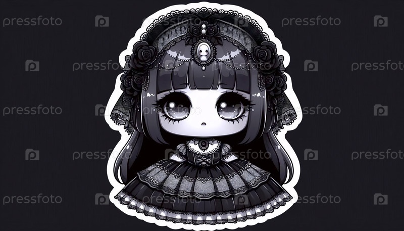 Милый стикер кавайи на готическую фарфоровую куклу Лолита, Ai generated image