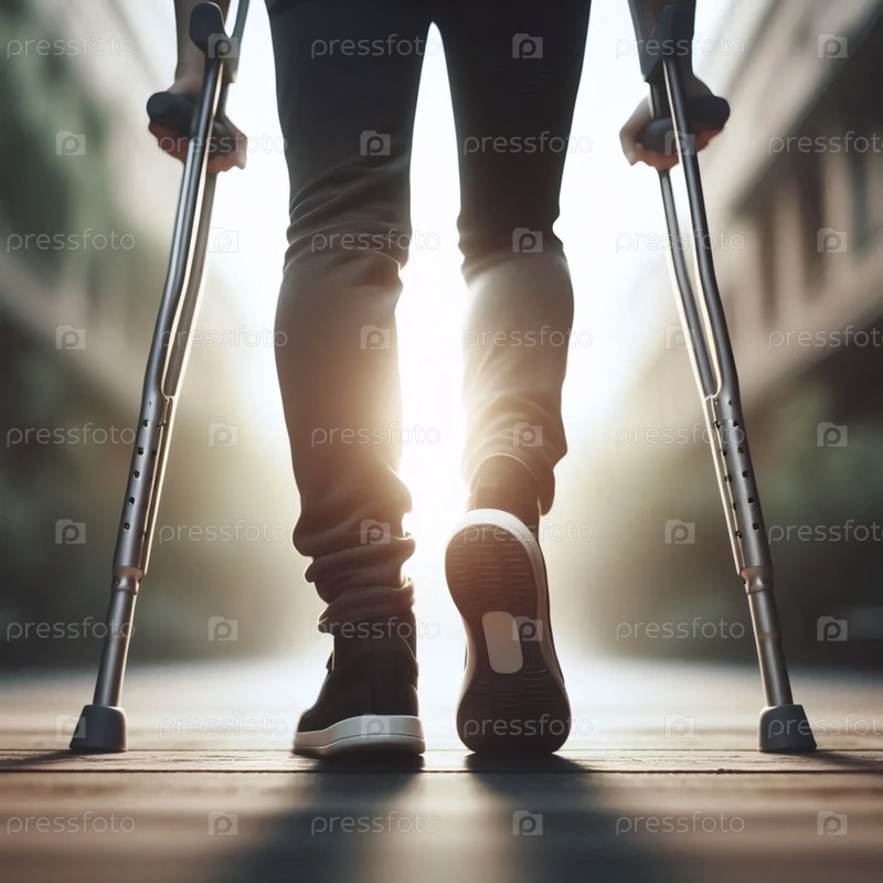 Человек, использующий костыли с заднего нижнего угла, Ai generated image