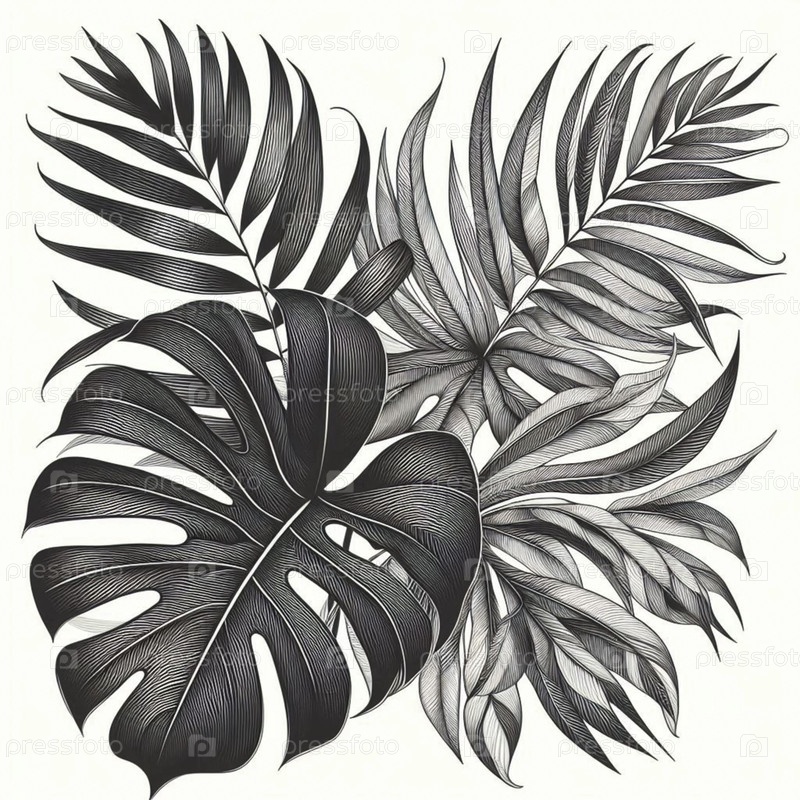 tropical leaves line art тропическое линиевое искусство