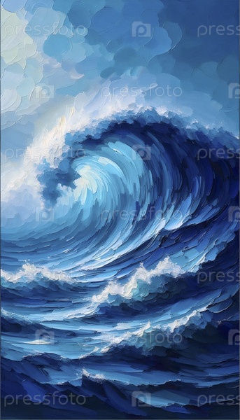 Абстрактная картина береговой волны на холсте, Ai generated image