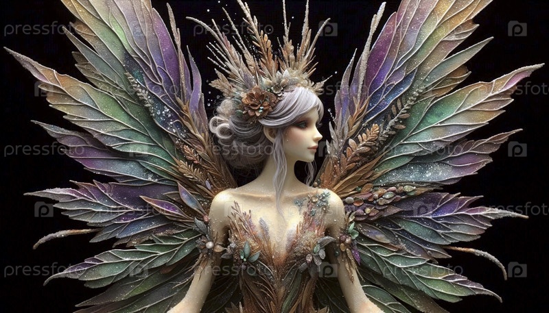 Фея с крыльями акварели солевой техники, Ai generated image