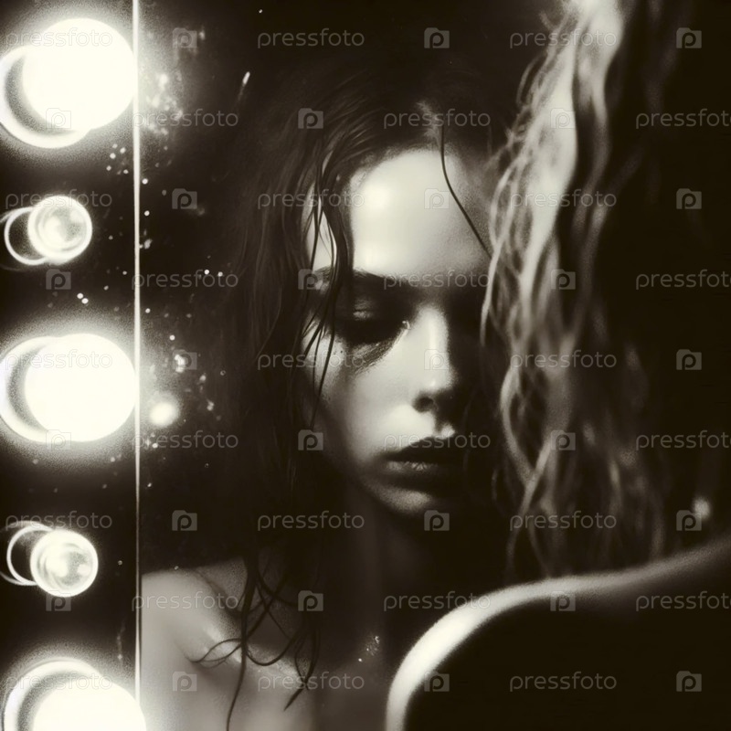 Усталое лицо в зеркале после шоу, Ай создал изображение