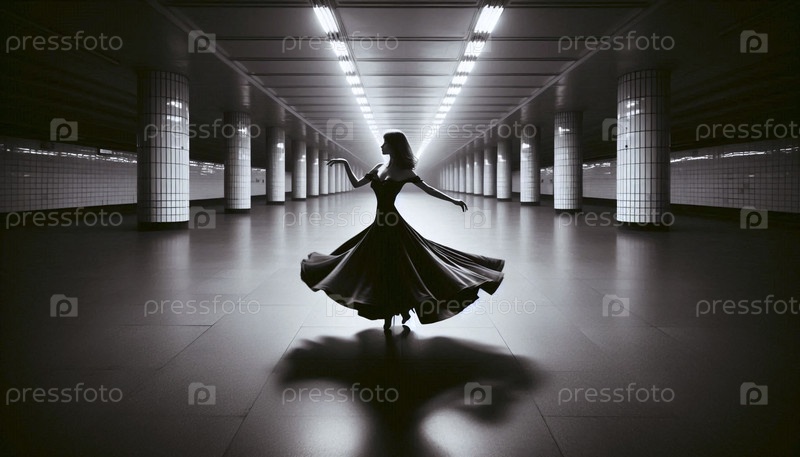Женщина вальсирует одна на пустой станции метро, Ai generated image