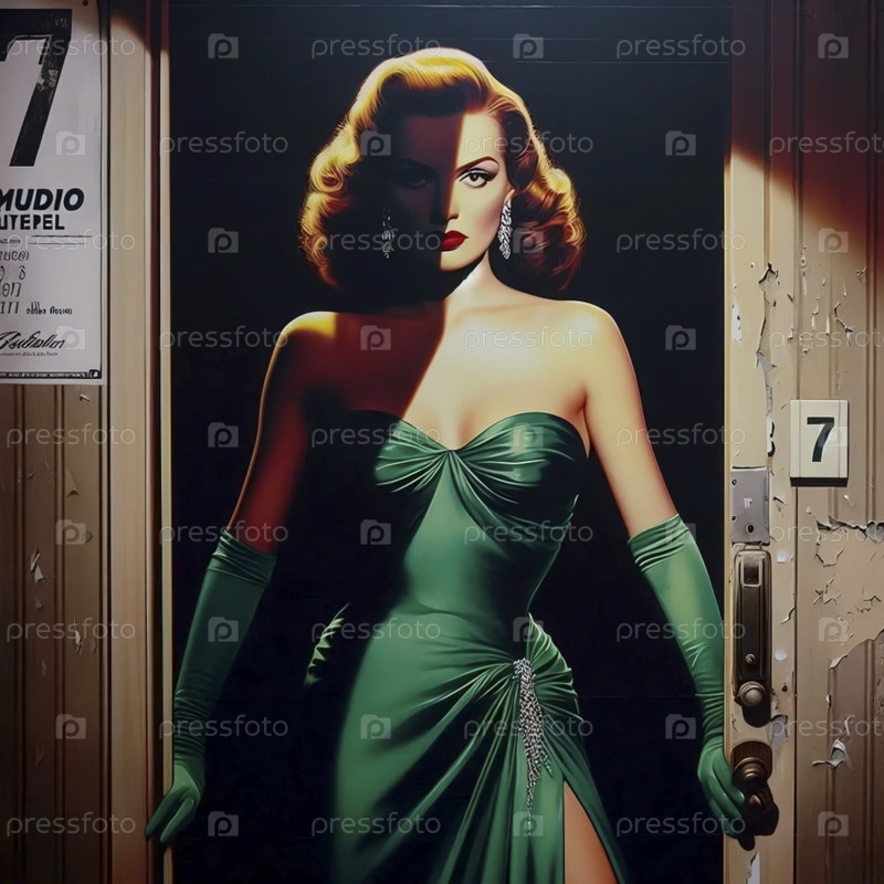 Винтажный кинопостер с женщиной в дверном проеме, Ai generated image