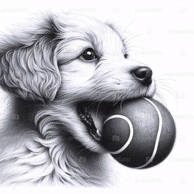 Щенок с шариковым чернилом рисует художественную печать, Ai generated image