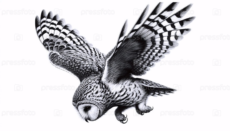 сова в полете чернила рисунок
