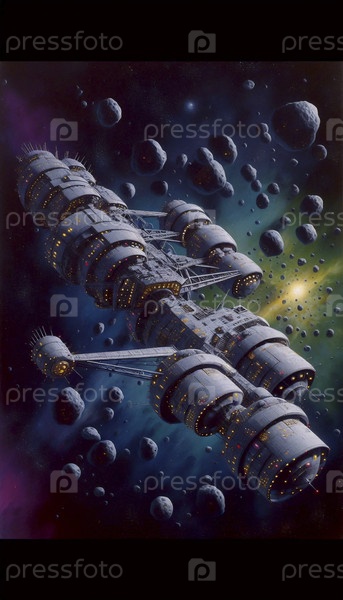 Массивный межзвездочный круизный лайнер из космоса: 1999 дрейфующий вблизи кристаллического поля астероидов, Ai generated image