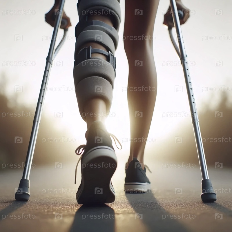 Человек, использующий костыли с заднего нижнего угла, Ai generated image