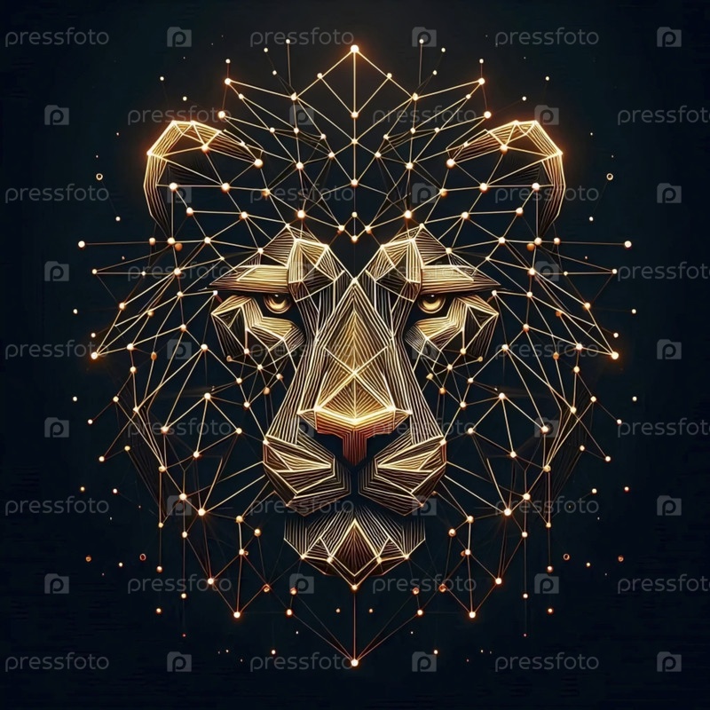 Цифровой неоновый геометрический плакат с портретом животного, Ai generated image
