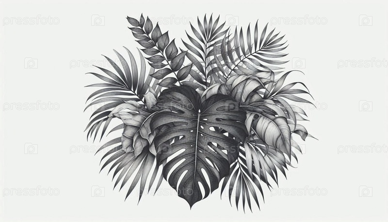 Тропические листья ботаническая линия арт-принт, Ai generated image