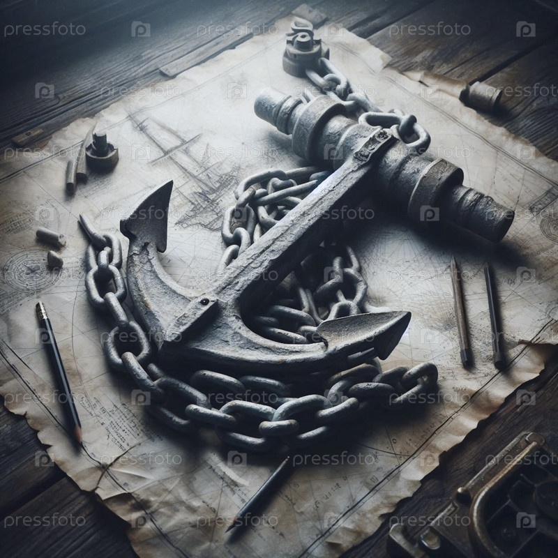 Длина пустого, классического макета якорной цепи, выложенного на проветриваемом изображении, созданном AI