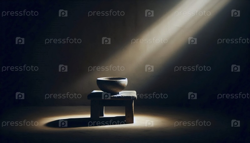 Мокет чайной чаши chawan, сделанный вручную на низком деревянном стуле, Ai generated image
