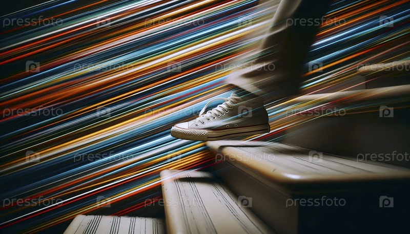 Ближайший план с медленным закрытием, подчеркивая размытость падающей обуви, Ай создал изображение