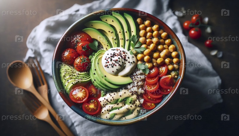 Быстрая и здоровая миска с зерном, Ai generated image