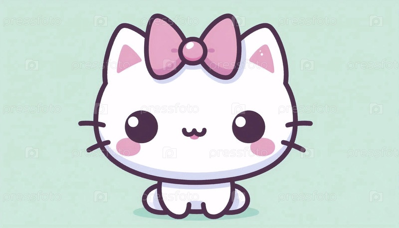 Простой кавайский персонаж кошки с луком, Ai generated image