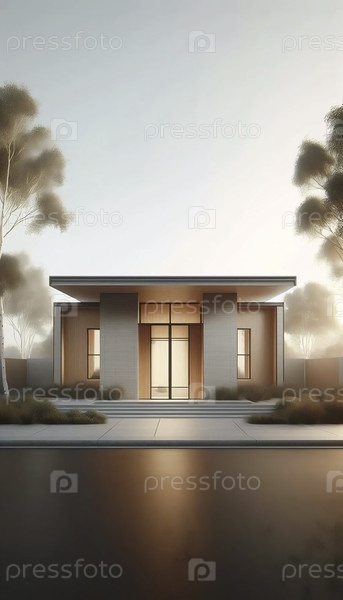 Нейтральный фотоотпечаток современного дома середины века, Ai generated image