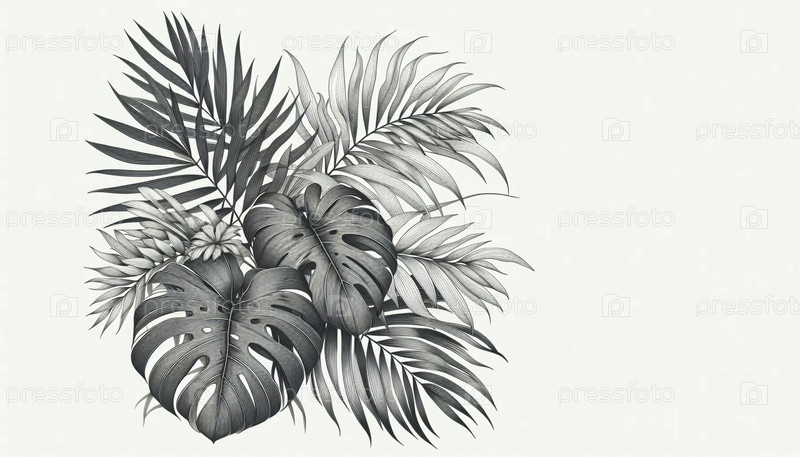 Тропические листья ботаническая линия арт-принт, Ai generated image