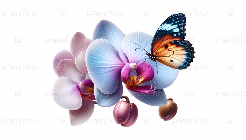 Орхидея с бабочкой, Ai generated image