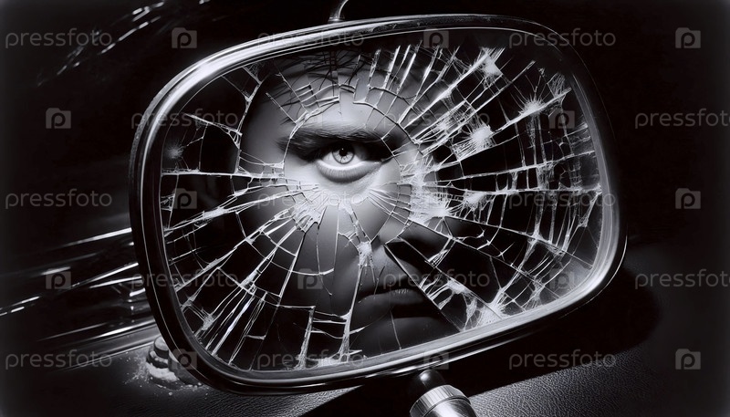 Глядя через треснувшее боковое зеркало, Ай создал изображение
