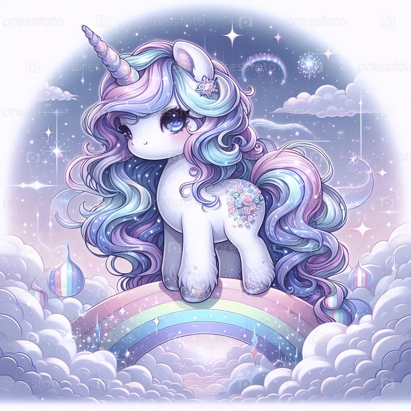 Подробная иллюстрация галактики-единорога, Ai generated image